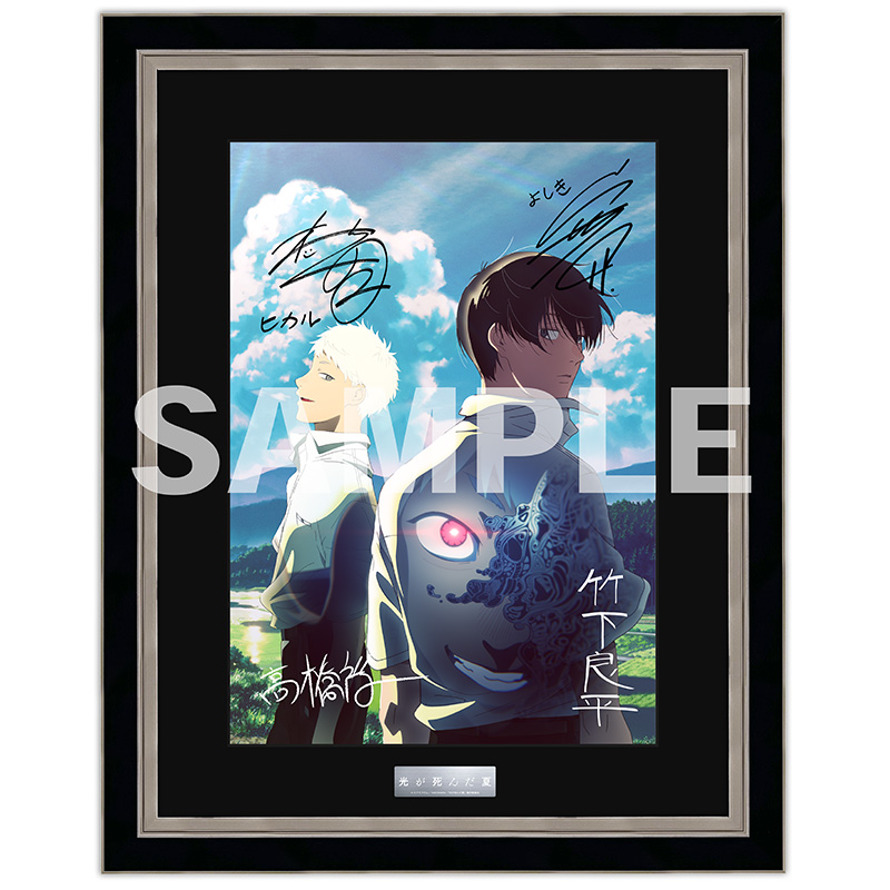 TVアニメ「光が死んだ夏」よりキービジュアルを使用した複製原画が登場です。 監督・シリーズ構成 竹下良平さん、キャラクターデザイン・総作画監督 高橋裕一さん、よしき役 小林千晃さん、ヒカル役 梅田修一朗さんの複製サイン入りの豪華仕様です。