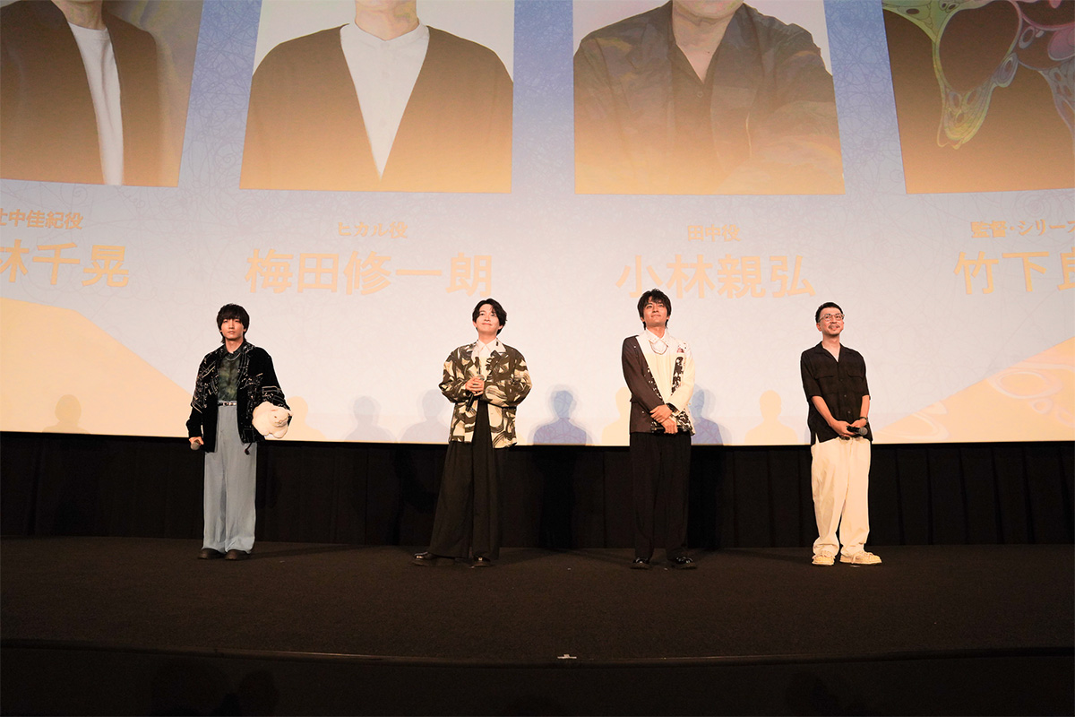 放送に先駆けて、2025年6月29日(日) TOHOシネマズ新宿にて「TVアニメ『光が死んだ夏』第1話プレミアム先行上映会」が開催。辻中佳紀役の小林千晃さん、ヒカル役の梅田修一朗さん、田中役の小林親弘さん、竹下良平監督が登壇し、第1話の感想やアフレコ裏話など、作品の魅力をたっぷりと語りました。